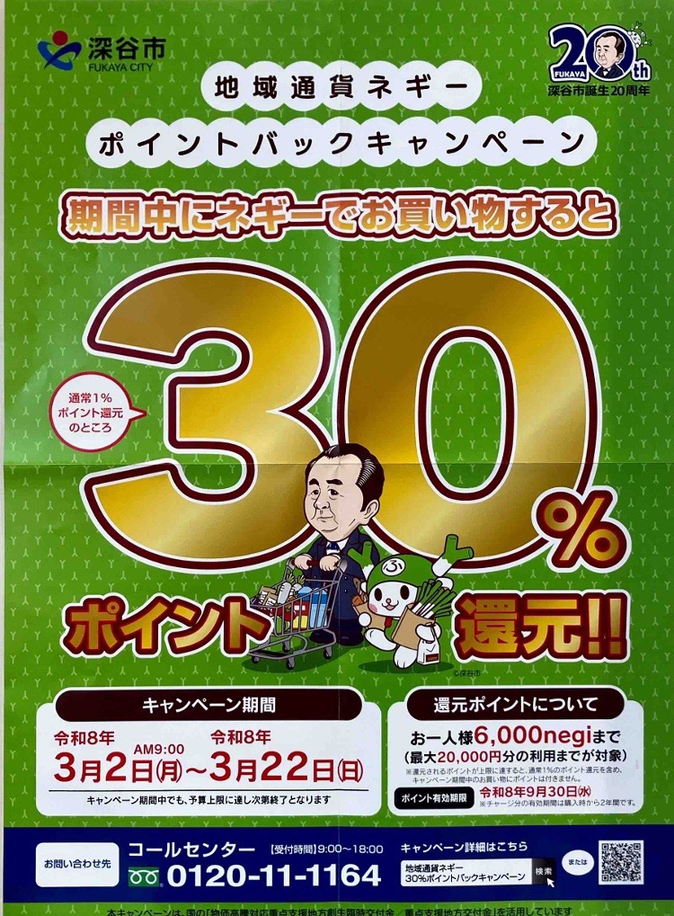 深谷市地域通貨ネギーポイントバックキャンペーン開始!