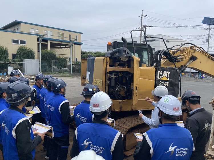 今回は、日本キャタピラー合同会社の方々より、ご説明いただきました。 工場内の危険予知等について、座学&実技の1時間しっかりと研修