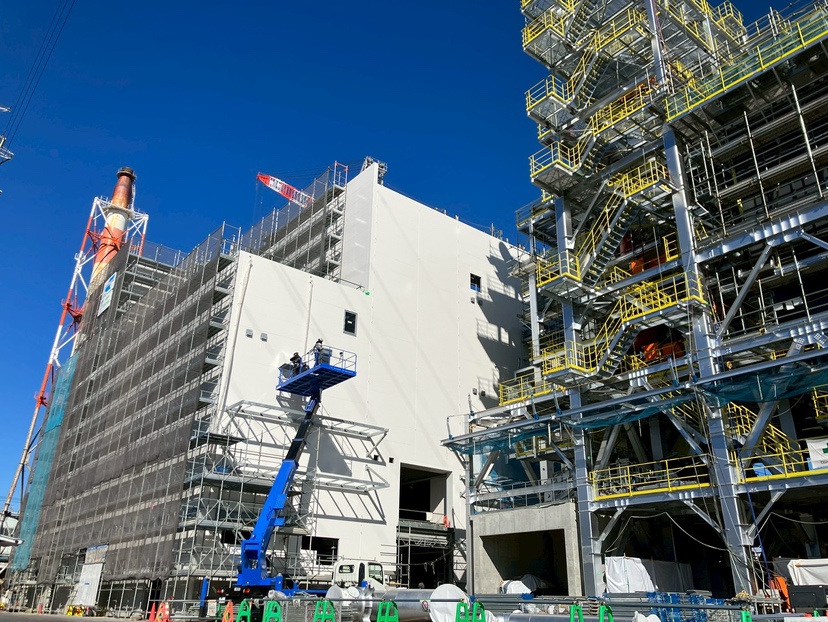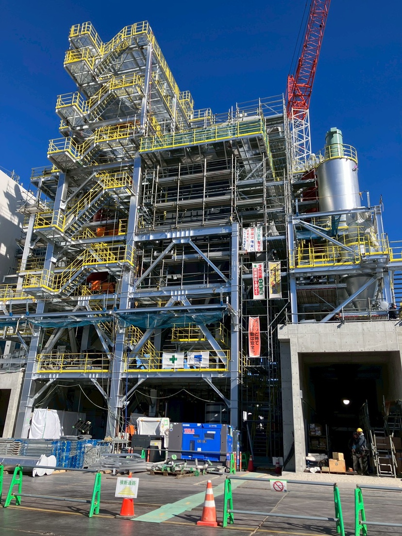 下から見上げた重厚感ある今の様子をご覧ください。 7階建てのレガリア事務所棟の他、プラント側も急ピッチで進めております。