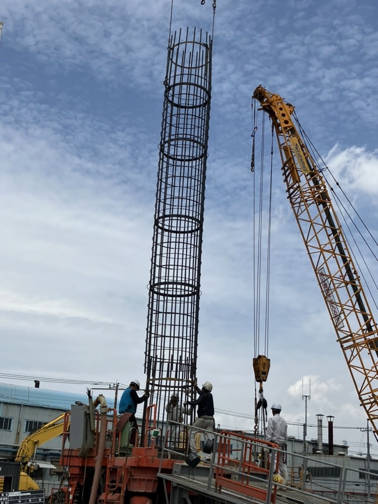 今年、5月に着工 約2ヶ月間に渡り、大小の杭打ちを行ないました。 その杭の本数、38本 工事に携わってる方々や近隣の方々、この工事においてご協力してくださってる方々みなさまに感謝申し上げます。