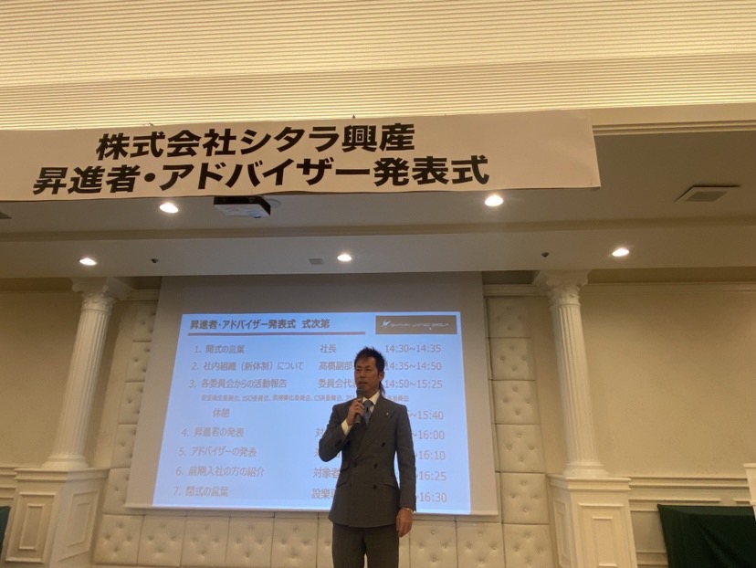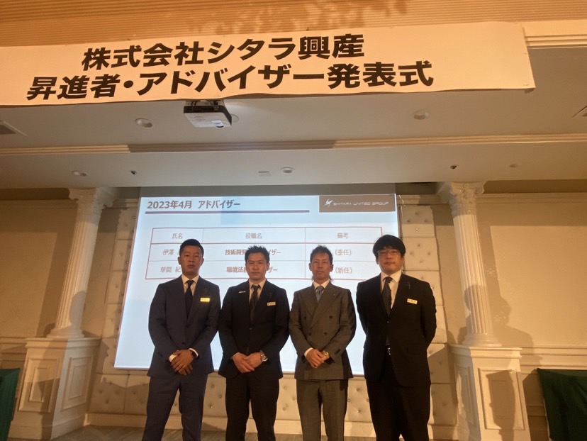 4月より昇進者とアドバイザーの 発表式を行いました。