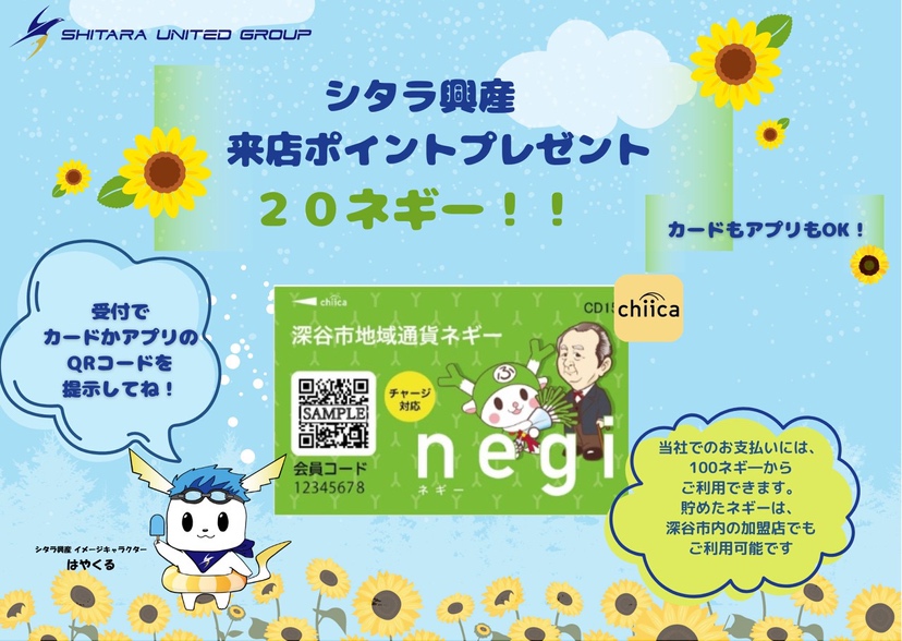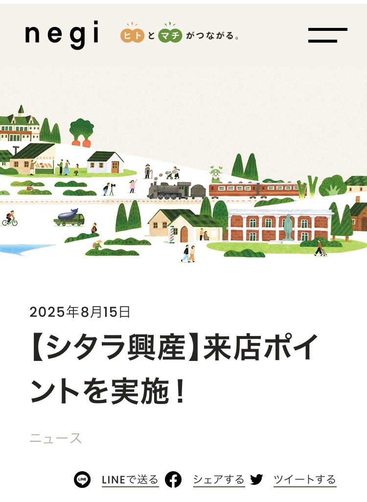 『深谷市ホームページ掲載~シタラ興産ネギー来店ポイント実施事例~』