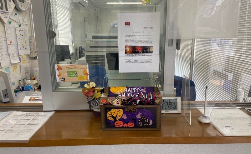 10月31日の本日、ハロウィンイベントと題して、 2番台貫受付、サンライズ受付にてハロウィンのお菓子を配布いたしました。
