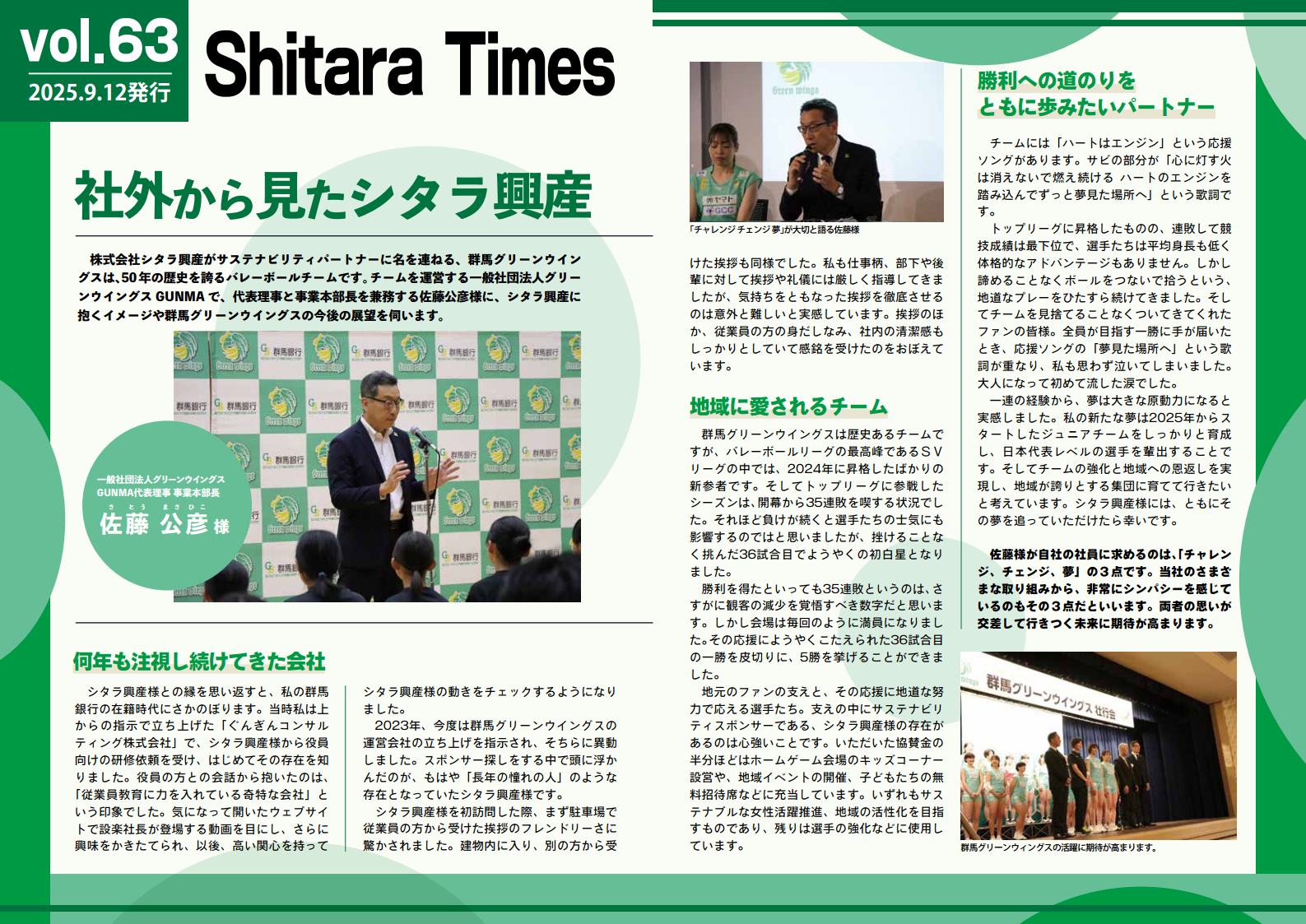 今回のSitara Times第63号にて、 一般社団法人グリーンウイングスGUNMA代表理事 事業本部長 佐藤 公彦様の インタビュー記事とシタラ興産のホットなNEWSをお届けします。 是非、ご覧ください。